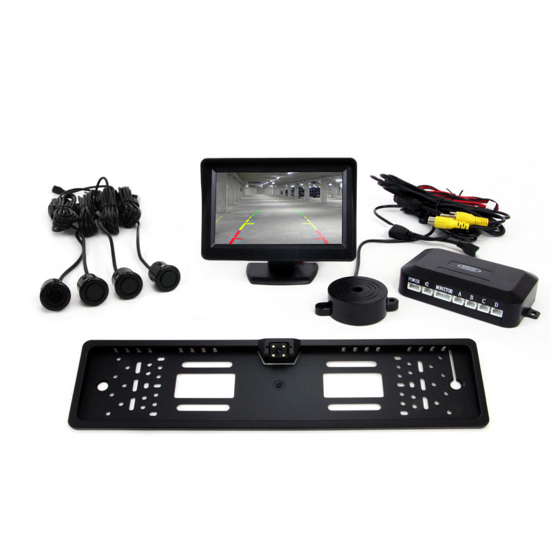 Popis produktu Zloženie sady: - riadiaca jednotka so 4 senzormi - LCD, - 4 čierne senzory GOLD 18mm, - veľmi efektívny reproduktor, - cúvacia kamera CAM-402 LED v ŠPZ, - 4,3 palcový TFT displej. ...Destinatar :