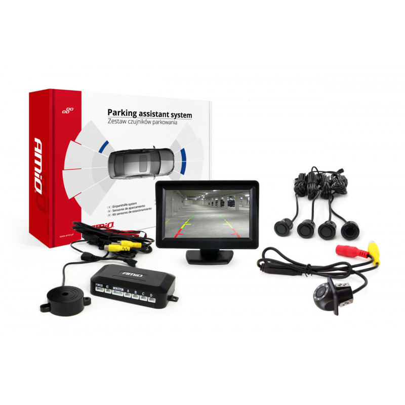 Asistenty parkovania TFT01 4,3 s kamerou HD-305 LED 4-senzorové čierne GOLD