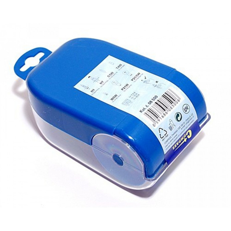 Plastová krabička náhradných autožiaroviek a poistiek, homologizácia E.