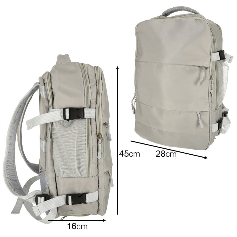 Cestovný batoh do lietadla vodotesný USB kábel 45x16x28cm sivý