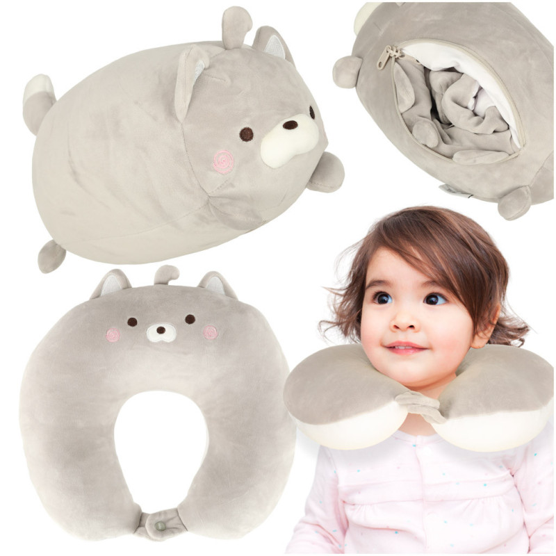 Cestovný vankúš 2v1 na krk pre lietadlo auto maskot mačka