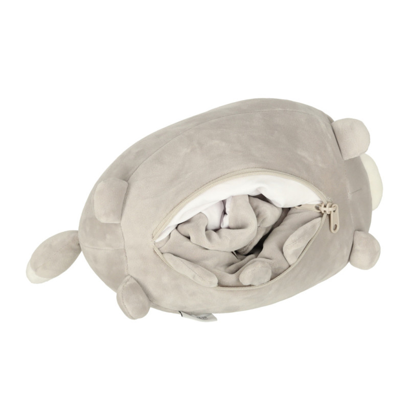 - Dva v jednom - maskot a vankúš - rozkošná mačka, ktorá sa po otočení stane pohodlným cestovným vankúšom v tvare croissantu. Ideálna na každodenné použitie a cestovanie