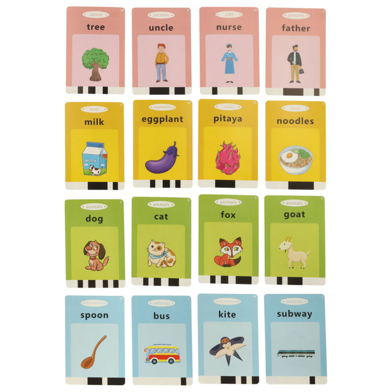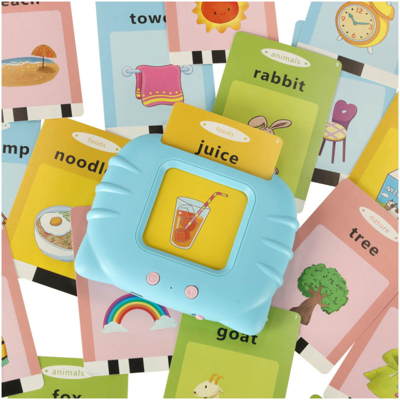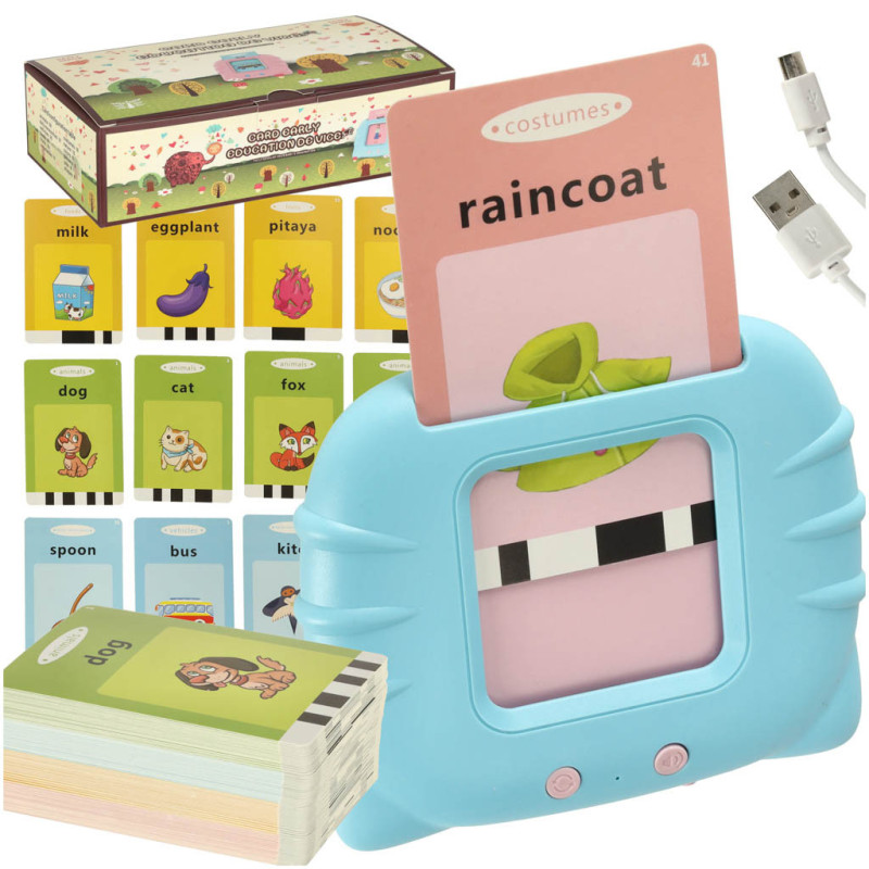 Každá karta má dve vopred nahraté slová, jedno na každej strane, a zodpovedajúcu kresbu na pochopenie ich významu. Tým sa stimuluje zrak aj sluch dieťaťa, takže určite vyhovuje najefektívnejšiemu spôsobu učenia pre každé batoľa.