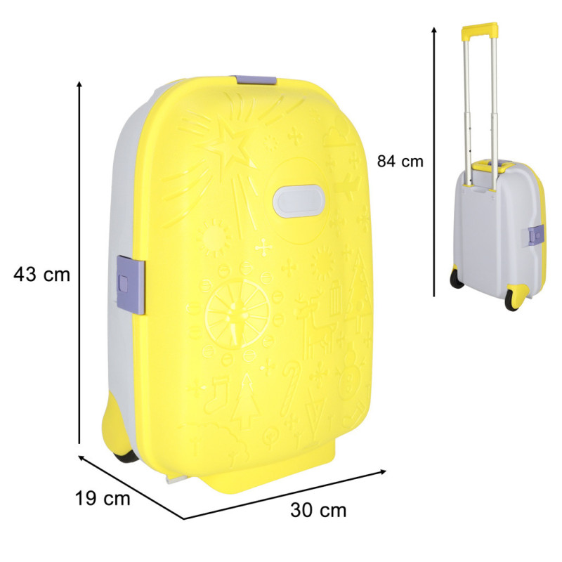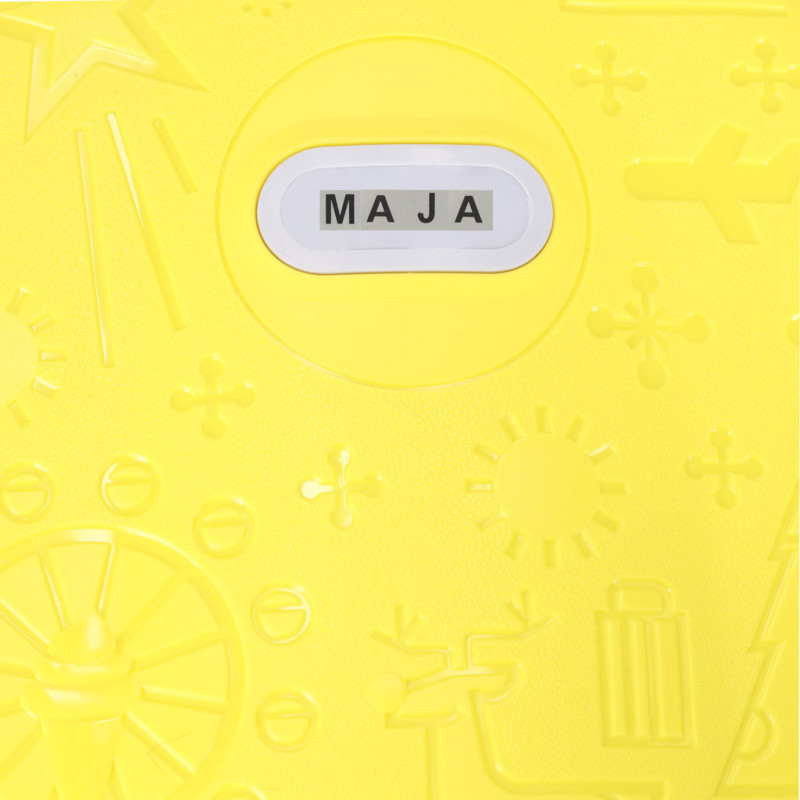 Vlastný kufrík je ideálny pre každého malého cestovateľa pripraveného na nové dobrodružstvá! Žltá farba a zaujímavé vzory upútajú pozornosť vášho dieťaťa a možno ho dokonca podnietia k tomu, aby si zbalili svoj vlastný kufor. Súprava obsahuje aj samolepky na podpísanie batožiny.