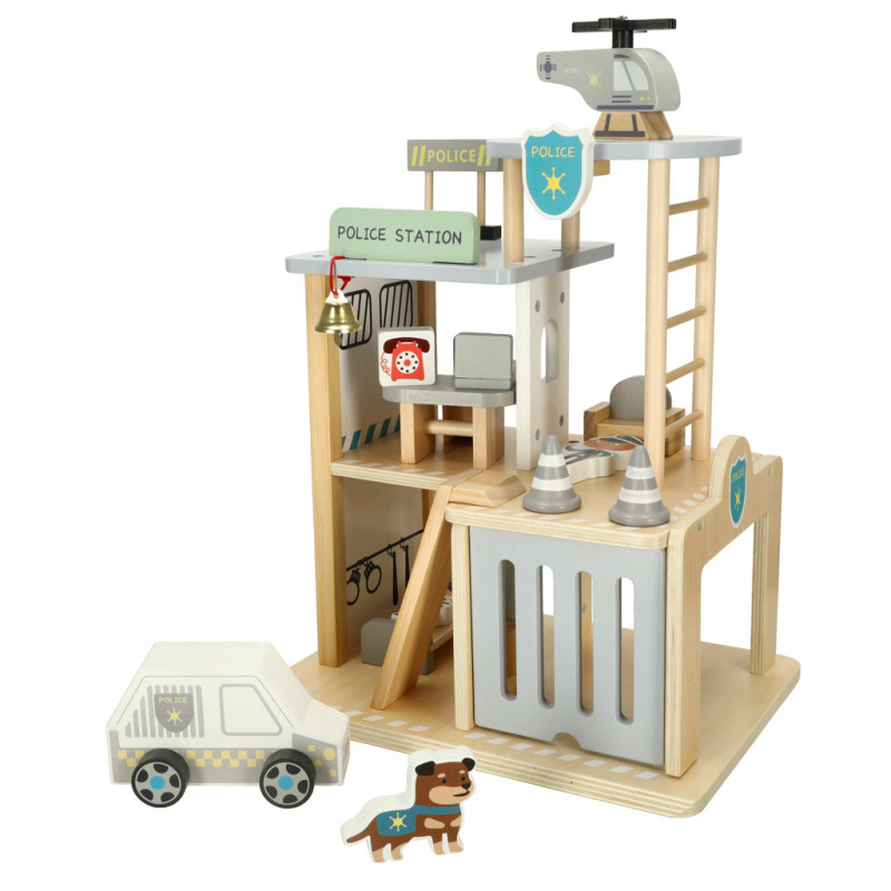 Trojposchodová policajná stanica zaručuje dobrodružnú hru. Na prízemí sa nachádza garáž pre policajné auto a cela pre šikovných zločincov. Na strednom poschodí sa nachádza kancelária policajného náčelníka, ktorá je miestom velenia pre celý policajný tím. Na najvyššom poschodí je pristávacia plocha pre vrtuľník, aby sa skúsený policajt dostal na miesto činu ešte rýchlejšie.