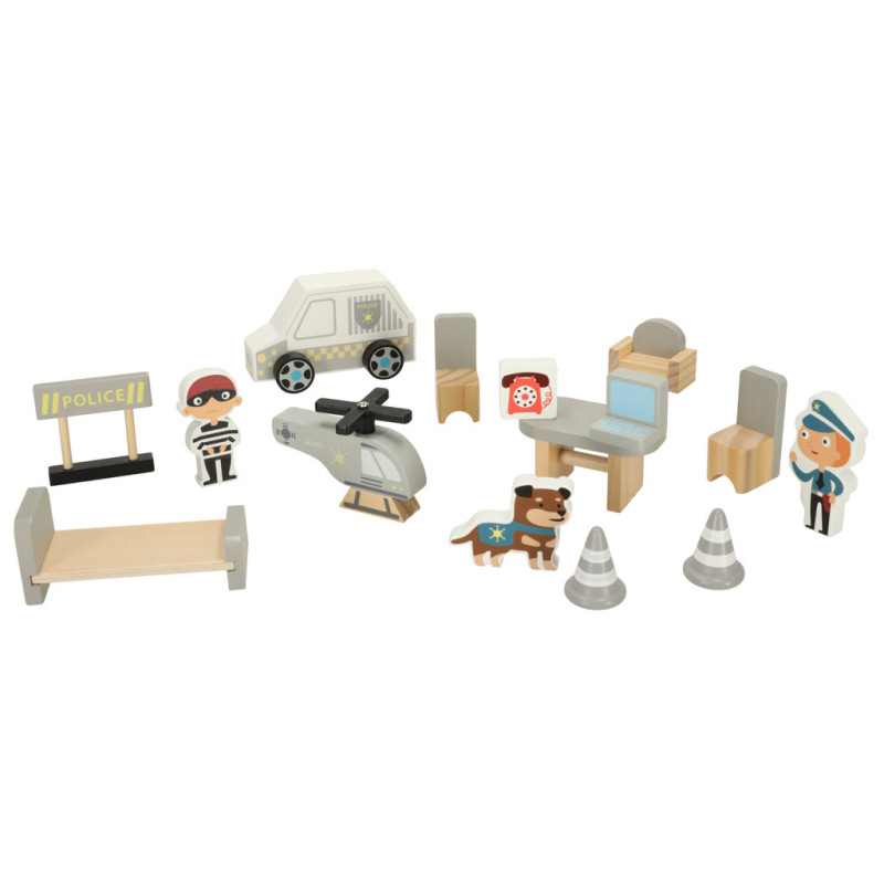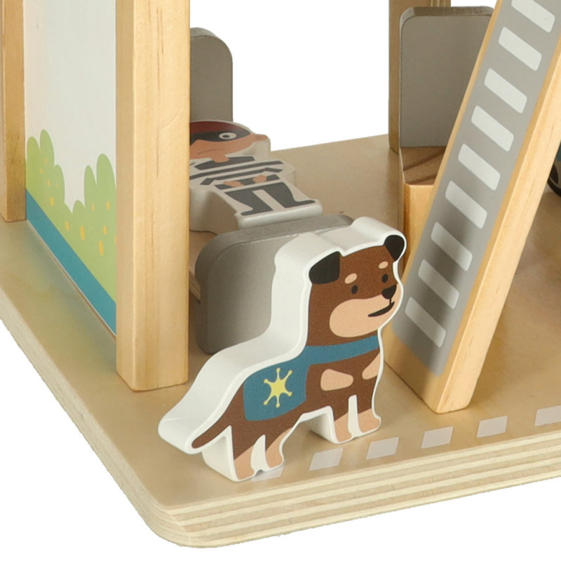 Policajná stanica a všetky doplnky (figúrky, vozidlá a nábytok) sú vyrobené z hladko brúseného dreva, takže máte istotu, že hračka bude vaše dieťa baviť dlhé roky.