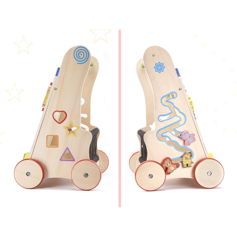 Naše chodítko je stabilnou oporou pre batoľa, ktoré sa učí chodiť. Dieťaťu sa ho nepodarí prevrátiť. Drevené kolieska sú chránené protišmykovou gumovou vrstvou.