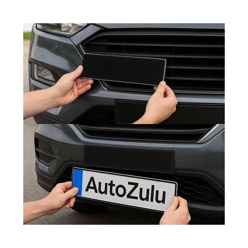 Bezrámikový držiak ŠPZ na suchý zips umožní pevné a rýchle uchytenie evidenčného čísla na nárazník alebo karosériu bez vŕtania a poškodenia laku. Stačí odmastiť plochu, nalepiť pásy zo suchého zipsu a tabuľku pritlačiť – spojenie je odolné voči vode, snehu aj bežným poveternostným podmienkam.
