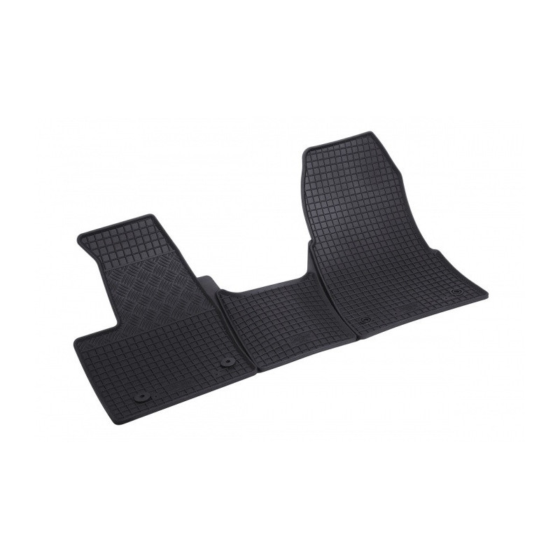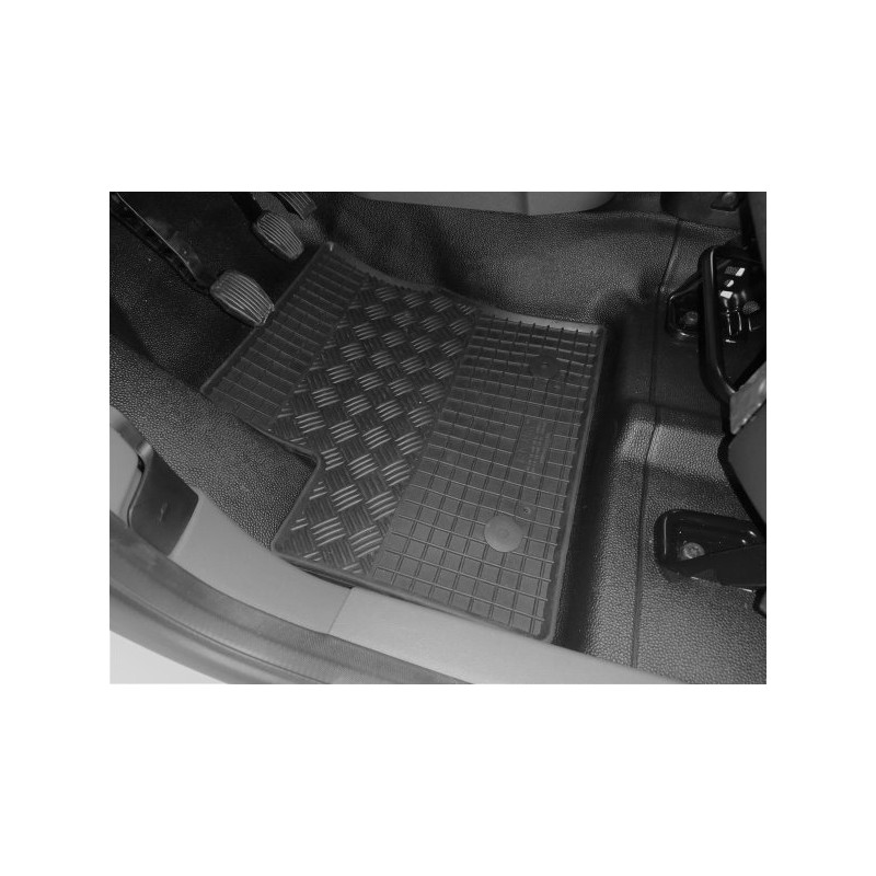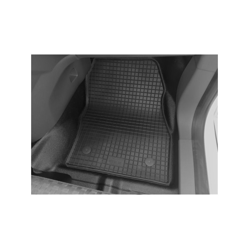 Gumené rohože na mieru pre FORD Transit Connect 2m (2019->). Rohože sú vyrobené presne na mieru interiéru daného vozidla. Lacnejšia náhrada originálnych rohoží.