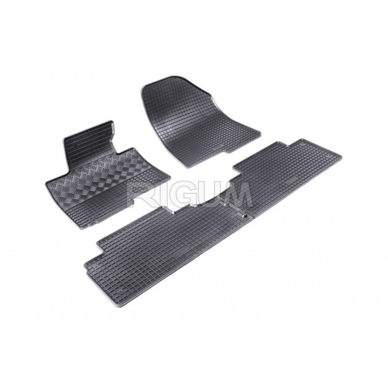 Gumené rohože na mieru pre KIA Carens 5miestne (2013->). Rohože sú vyrobené presne na mieru interiéru daného vozidla. Lacnejšia náhrada originálnych rohoží.