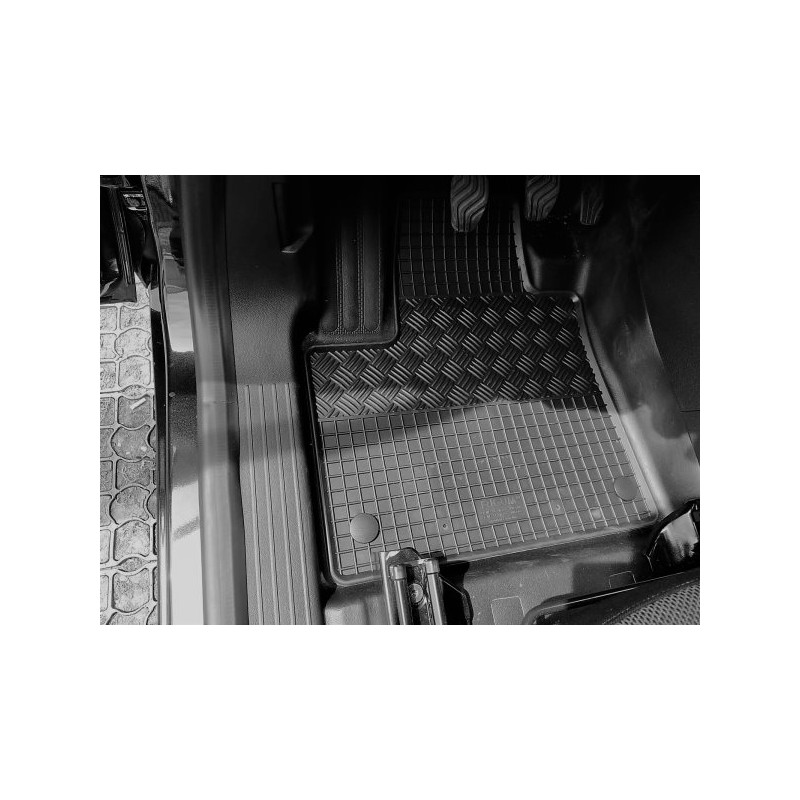 Gumené rohože na mieru pre Mercedes T-Klasse (2022->). Rohože sú vyrobené presne na mieru interiéru daného vozidla. Lacnejšia náhrada originálnych rohoží.