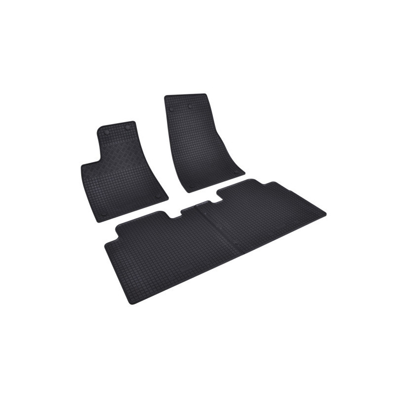 Gumené rohože na mieru pre TESLA Model X (2015->). Rohože sú vyrobené presne na mieru interiéru daného vozidla. Lacnejšia náhrada originálnych rohoží.