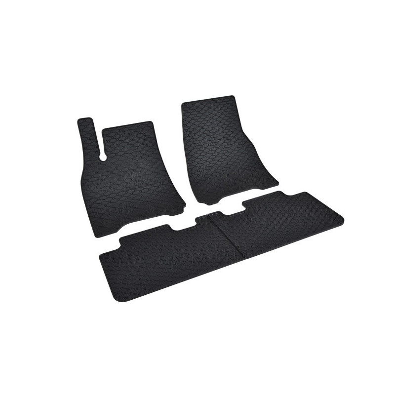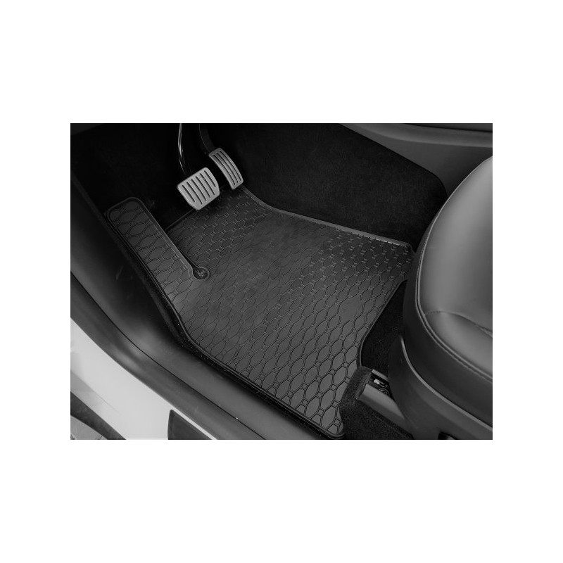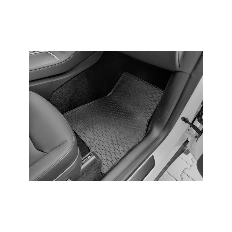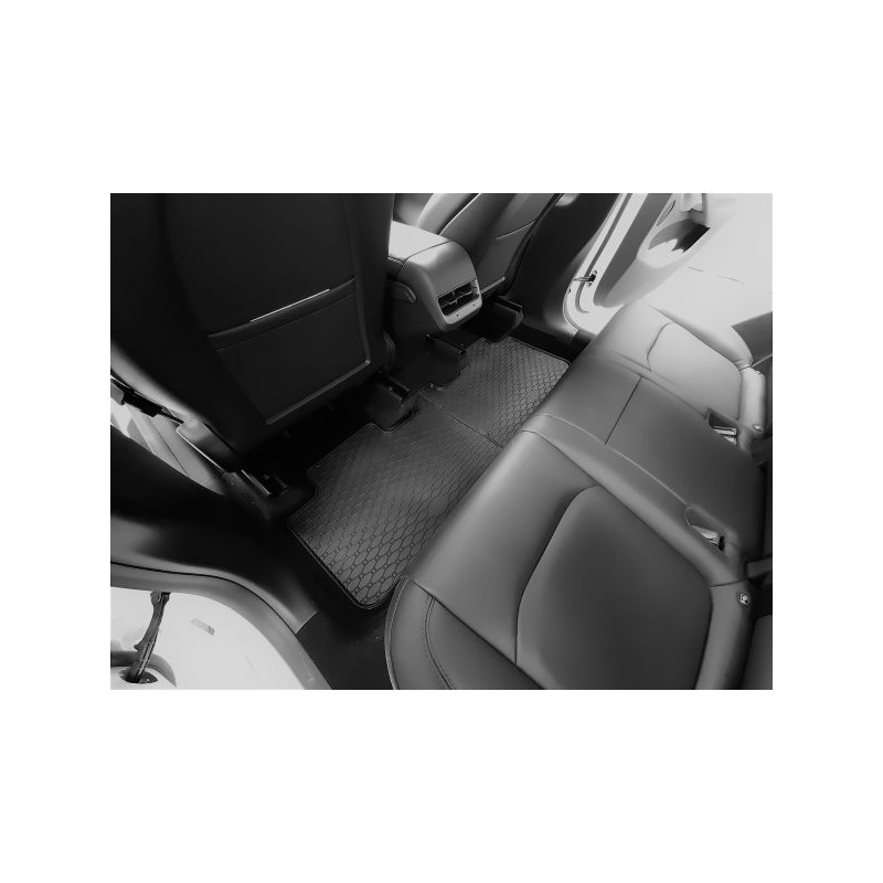 Gumené rohože na mieru pre TESLA Tesla Y (2021->). Rohože sú vyrobené presne na mieru interiéru daného vozidla. Lacnejšia náhrada originálnych rohoží.