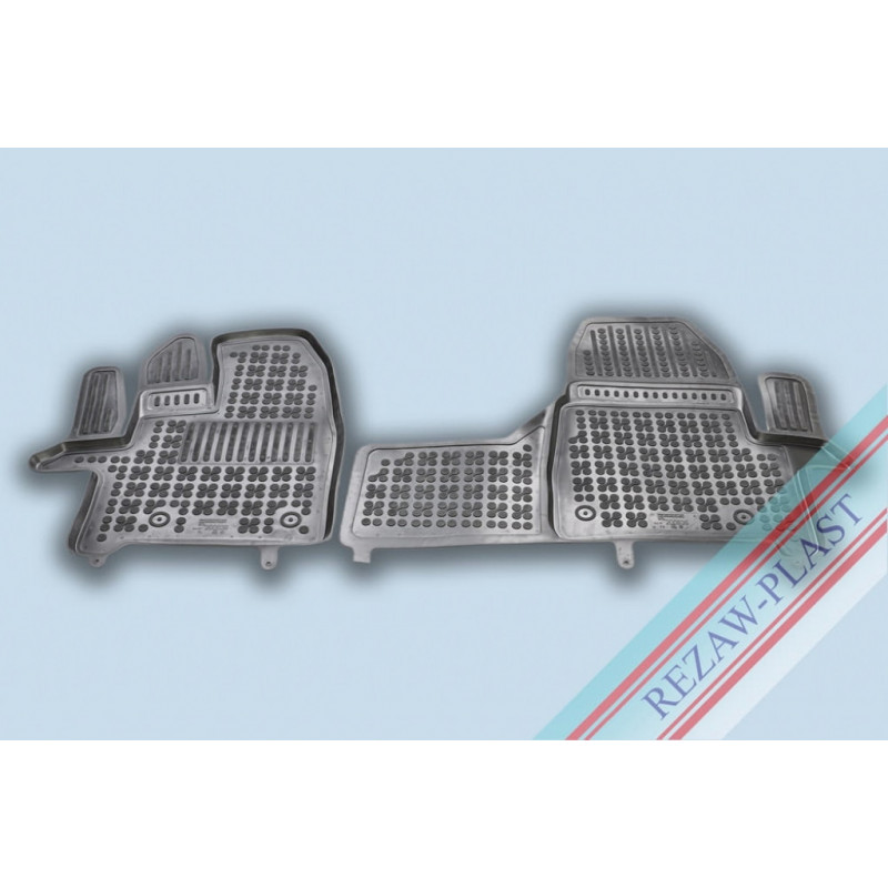 Gumené rohože so zvýšeným okrajom pre Ford Tourneo Custom verzia Titanium, 2 miestna verzia s automatickou prevodovkou (2018->) na mieru. Rohože so zvýšeným okrajom vyrobené presne na mieru interiéru daného vozidla. Vysoká odolnosť, kvalita spracovania a celoročné využitie.