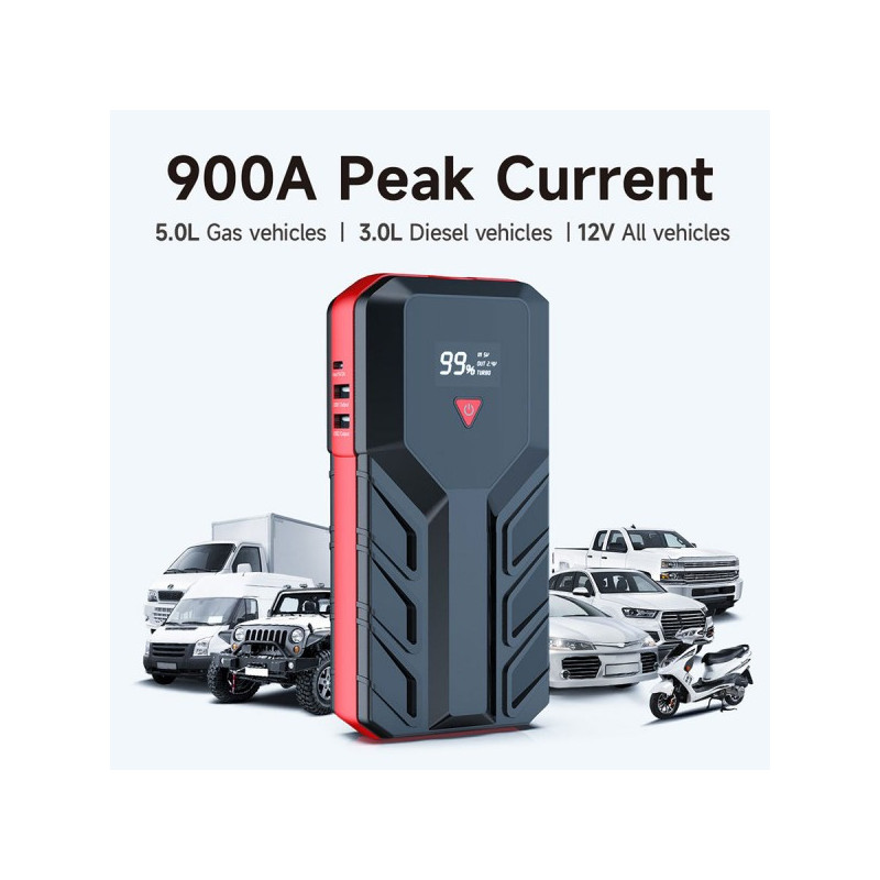 Štartovacia sada kompaktných rozmerov ktorá Vám pomôže naštartovať vozidlo, slúži aj ako powerbank pre USB nabíjanie, alebo prenosné LED svetlo. Jump starter obsahuje prehľadný LCD displej ktorý zobrazuje aktuálny prevádzkový stav.