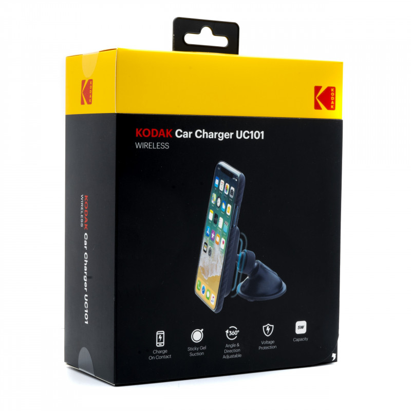Uchwyt samochodowy z wbudowaną ładowarką indukcyjną marki Kodak.