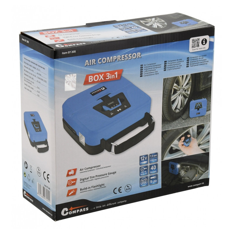 Kompresor 12V BOX digitální 3in1