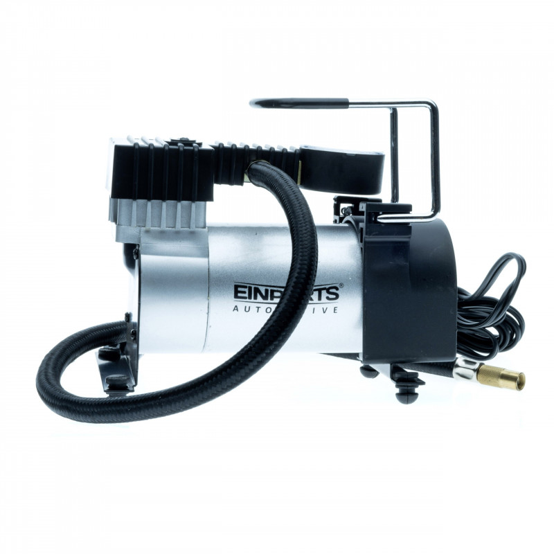 Kovový kompresor EINPARTS AUTOMOTIVE 12V 10 Bar 150 PSI je spolehlivý nástroj, který umožňuje rychlé nafukování automobilových pneumatik, jízdních kol, sportovních míčů a mnoha dalších položek. Poháněn z auta. Ovládejte tlak pomocí velkého manometru a snadno ho přenášejte kamkoli díky pohodlné rukojeti.