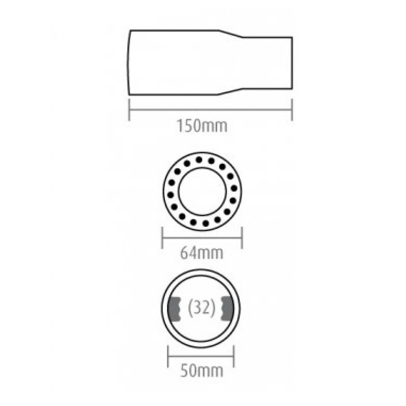 Vhodné na výfuk o priemere: od 32 do 44mm. (priemer koncovky 50mm, úchyty po stranách zaberaju cca 6 mm)