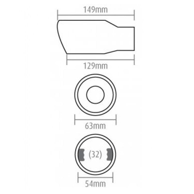 Vhodné na výfuk o priemere: od 32 do 48mm. (priemer koncovky 54mm, úchyty po stranách zaberajú cca 6 mm)