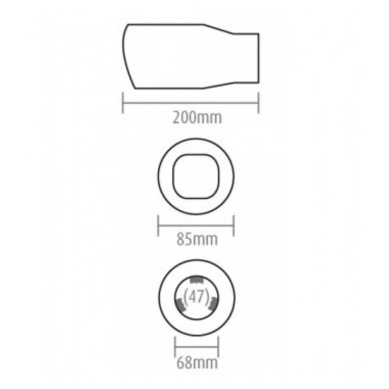 Vhodné na výfuk o priemere: od 47 do 62mm. (priemer koncovky 68mm, úchyty po stranách zaberajú cca 6 mm)