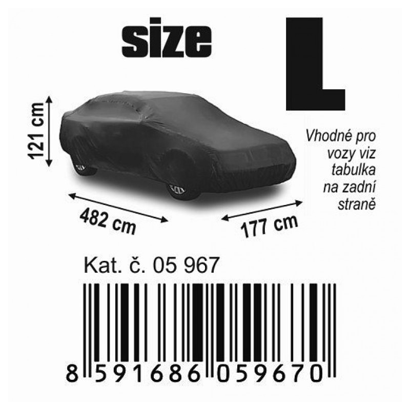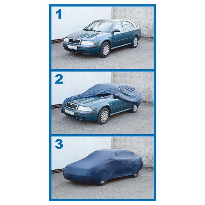 Priedušná plachta na celý automobil (materiál NYLON). Vhodná proti znečisteniu vozidla, v zimných mesiacoch zabraňuje tvoreniu námrazy na celom automobile. Jednoduché univerzálne upevnenie pomocou všitej gumy. Balené v praktickom, na zips uzatvárateľnom balení, do ktorého možno plachý po použití ľahko zložiť a uskladniť.