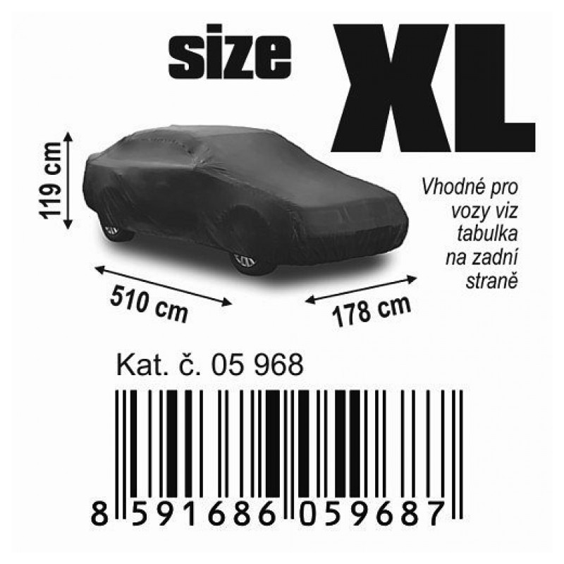 Priedušná plachta na celý automobil (materiál NYLON). Vhodná proti znečisteniu vozidla, v zimných mesiacoch zabraňuje tvoreniu námrazy na celom automobilu. Jednoduché univerzálne upevnenie pomocou všitej gumy. Balené v praktickom, na zips uzatvárateľnom balení, do ktorého možno plachtu po použití ľahko zložiť a uskladniť.