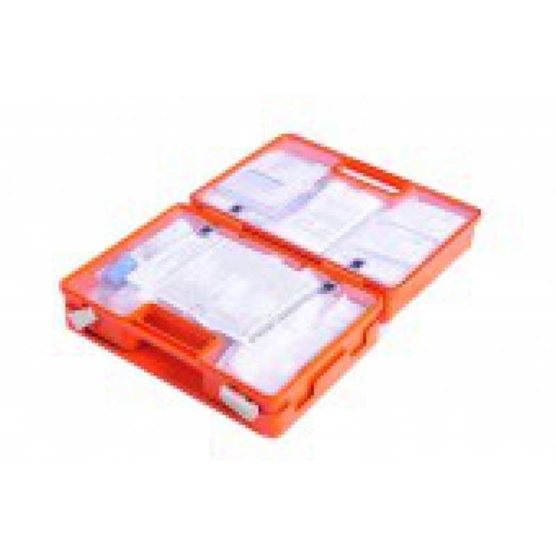 Vyrobený z PS plastu odolného voči nárazom vďaka čomu je vhodný do výrobných priestorov, školských zariadení, administratívnych priestorov. V kufri je dostatok miesta pre prípadné doplnenie vlast...