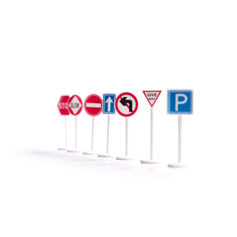 Súčasťou je aj sada 7 dopravných značiek. Všetky ďalšie prvky sa zmestia do lietadla.