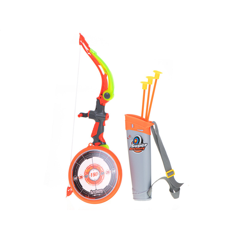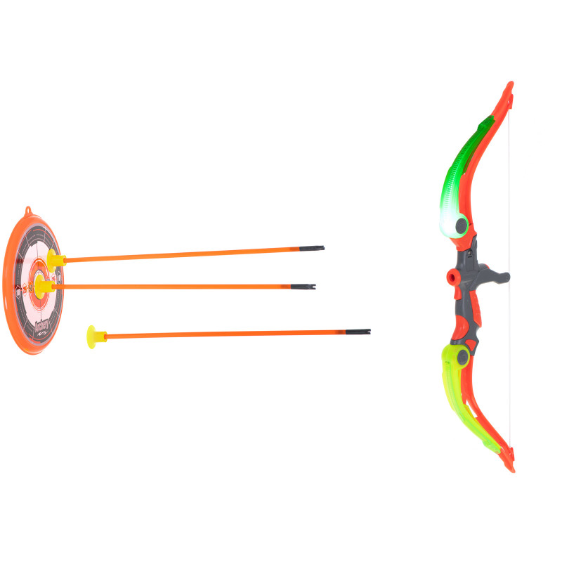 Hračkársky luk je ideálny zábava pre deti, ktoré snívajú o tom, že sa stanú lukostrelcami. Luk je napnutý gumou a každý šíp je zakončený gumovým hrotom.