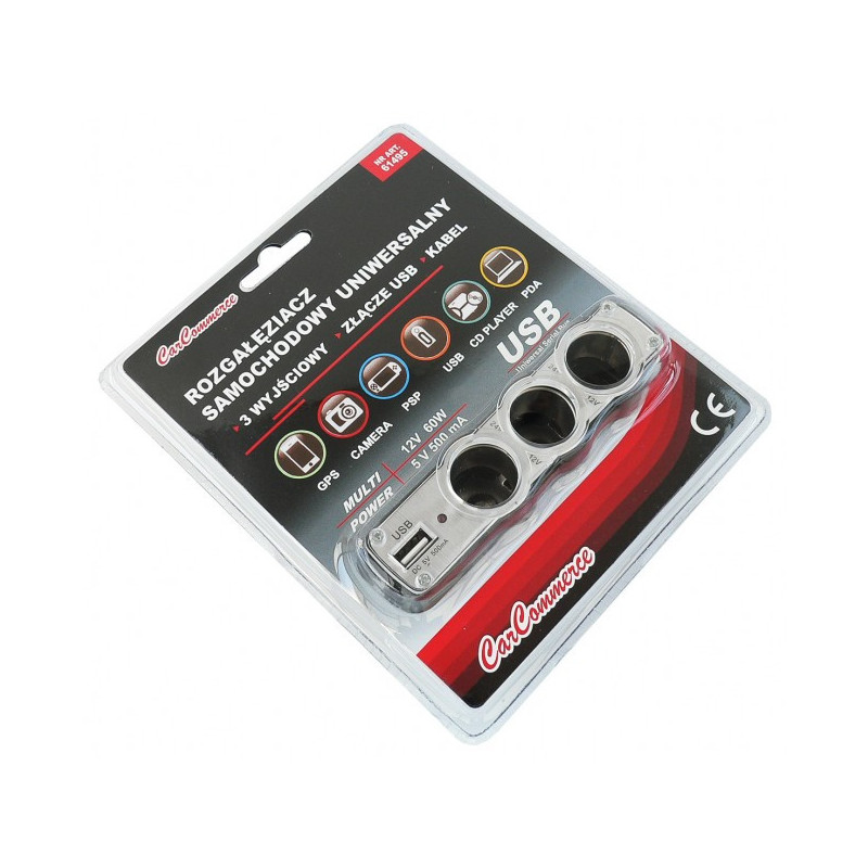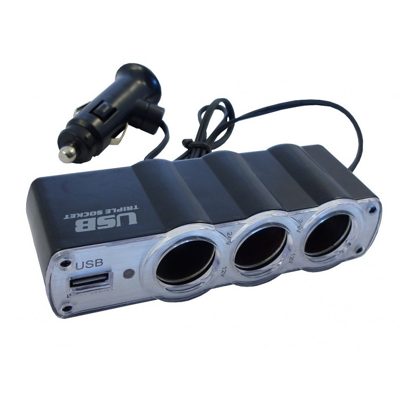Multi zásuvka zapaľovača 3+1 USB s káblom 12/24 V Rozmery: VSTUP ---> 12/24 V - standard VÝSTUP ----> 3 x 12/24 V - standard - 5 A total 1 x 5 V - USB - 1 A total