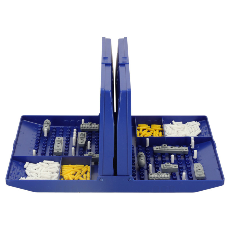 Plastový obal sa premení na dvojitú hraciu plochu, na ktorej hráči uskutočňujú svoje strategické hry. Na každého hráča pripadá 5 lodí, ktoré je potrebné dômyselne umiestniť. Cieľom hry je uhádnuť polohu súperových lodí a potopiť ich. Pravidlá sú triviálne, ale poskytujú hodiny návykovej zábavy!