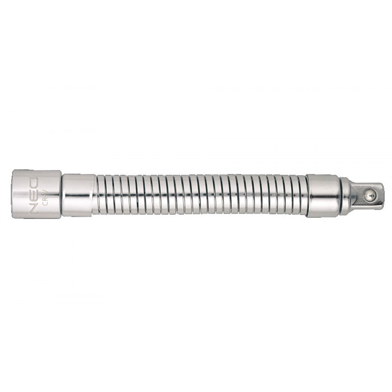 NEO 1/2 ' Flexibilné predĺženie s dĺžkou 190 mm. Produkt je vyrobený z odolnej chróm-vanádiovej ocele. Umožňuje pracovať na ťažko prístupných miestach. Certifikát TÜV Rheinland zaručuje vysokú kvalitu a spoľahlivosť. Značka NEO spĺňa očakávania profesionálov.