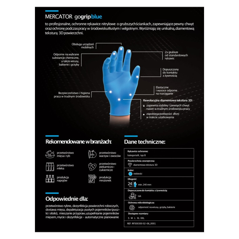 MERCATOR® gogrip modré nitrilové rukavice – veľkosť L sú ideálnou voľbou pre profesionálov, ktorí požadujú spoľahlivú ochranu, vysoký komfort a nadštandardnú výdrž pri práci.