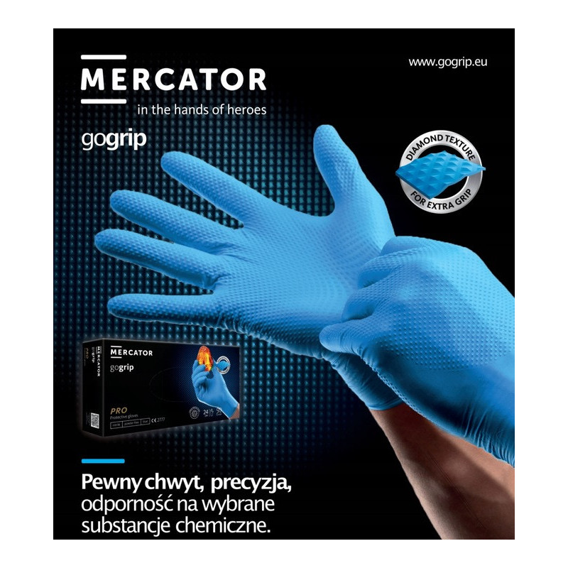 Veľmi odolné nitrilové rukavice MERCATOR® gogrip modré – veľkosť M (50 ks) sú špičkové ochranné rukavice navrhnuté pre prácu v extrémnych podmienkach. Vďaka 3-násobnej hrúbke, unikátnej 3D diamantovej textúre a odolnosti voči chemikáliám, olejom a vlhkosti poskytujú maximálnu ochranu a pohodlie pri každej práci.