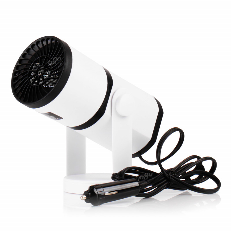 Výrobok má funkcie horúceho a studeného vzduchu.Vhodné pre napájanie zo zásuvky zapaľovača cigariet 12 V. Funkcia sa volí spínačom umiestneným na kryte. Nastaviteľný držiak s lepiacou páskou.