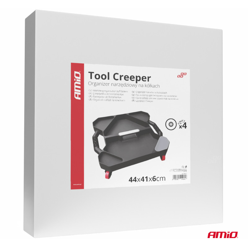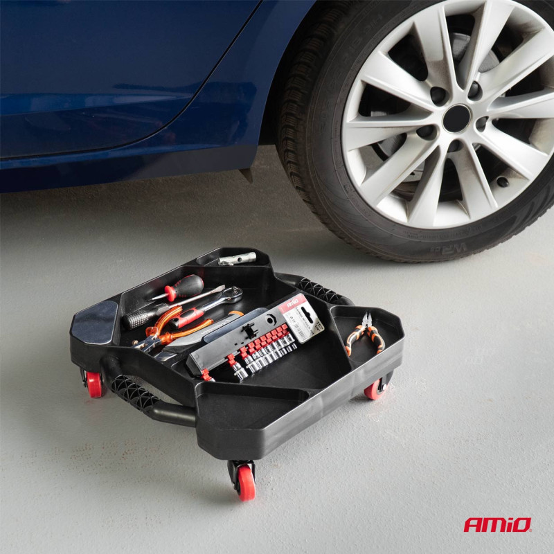 Organizér náradia na kolieskach AMiO-04265 je praktický a mobilný pomocník pre každého majstra, mechanika či domácich kutilov. Jeho robustná konštrukcia z odolného plastu s vysokými okrajmi zabraňuje vypadávaniu náradia a umožňuje efektívne usporiadanie náradia, ako sú kľúče, skrutkovače a ďalšie príslušenstvo. Vďaka odolným kolieskam je ľahko prenosný a ideálny pre prácu pod vozidlom, v autodielni alebo garáži.