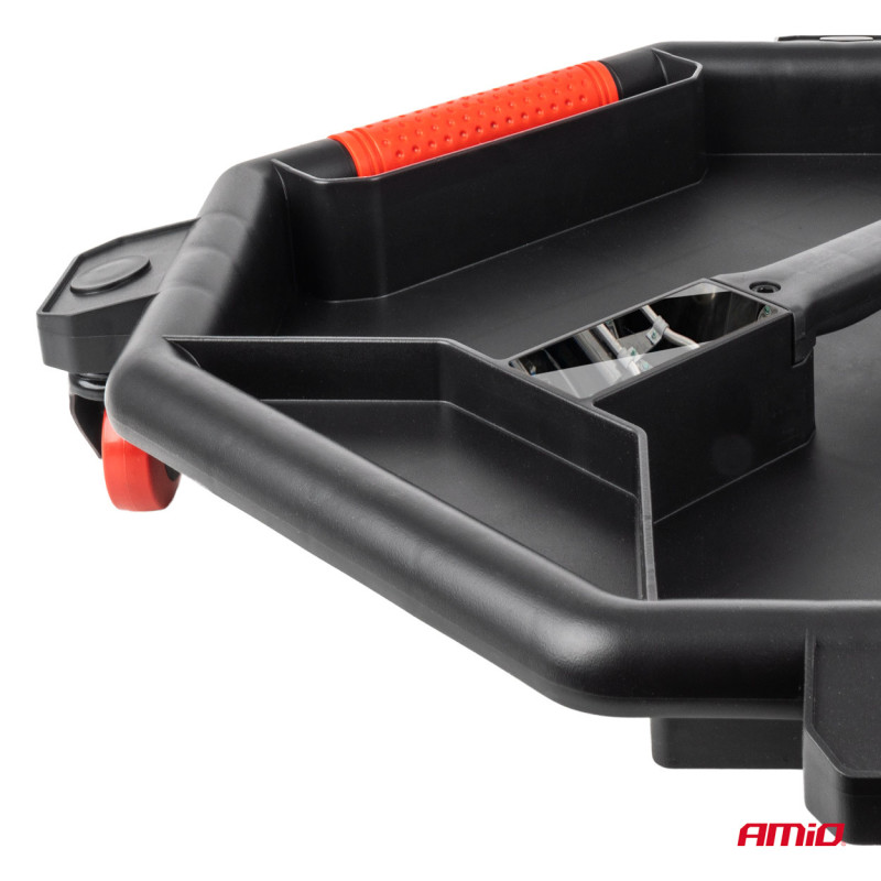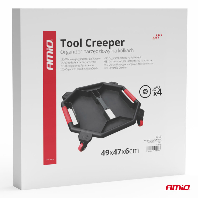 Organizér náradia na kolieskach AMiO-04266 je praktický a mobilný pomocník pre každého majstra, mechanika či domácich kutilov. Jeho robustná konštrukcia z odolného plastu s vysokými okrajmi zabraňuje vypadávaniu náradia a umožňuje efektívne usporiadanie náradia, ako sú kľúče, skrutkovače a ďalšie príslušenstvo. Vďaka odolným kolieskam je ľahko prenosný a ideálny pre prácu pod vozidlom, v autodielni alebo garáži.