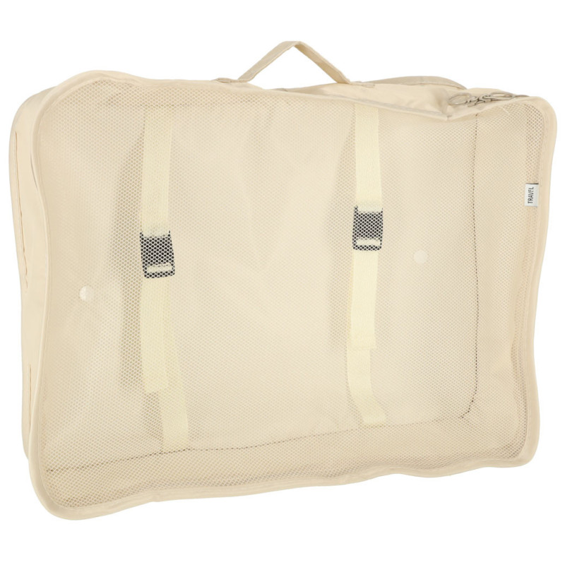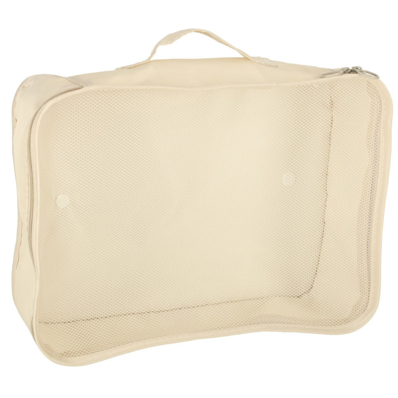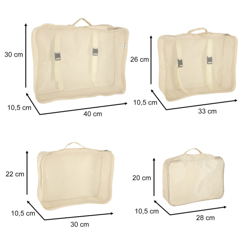Praktické organizéry do kufra - nepostrádateľné na každej ceste! Udržiavanie poriadku vo vašej batožine bude vďaka nim oveľa jednoduchšie. Súprava obsahuje 8 organizérov rôznych veľkostí - sú tu štyri kocky na oblečenie, taška, organizér na topánky, vrecko na make-up a malé vrecko na drobnosti. Všetky predmety v súprave majú béžovú farbu.
