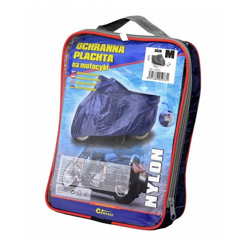 Priedušná plachta na motocykel (materiál NYLON), vhodná proti prachu i znečisteniu. Jednoduché univerzálne upevnenie pomocou všitej gumy.