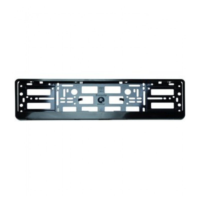Plastová podložka pod tabuľku registračnej značky (RZ) alebo evidenčnej značky (ŠPZ) bežných rozmerov. Karbónová lišta podčiarkuje celkový vzhľad rámčeka.