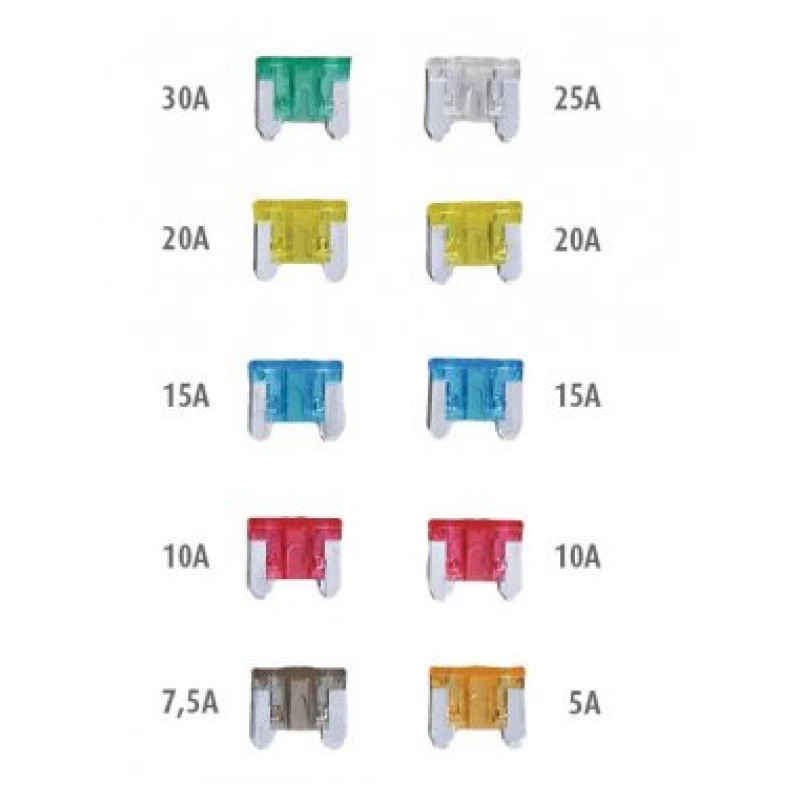 Obsah balenia: 5A, 7,5A, 2x 10A, 2x 15A, 2x 20A, 25A, 30A