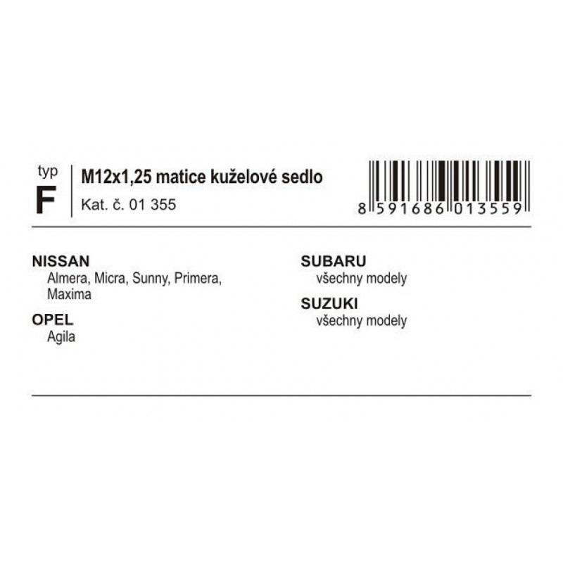 Poistné matice kolies F M12x1, 25 kužeľové sedlo