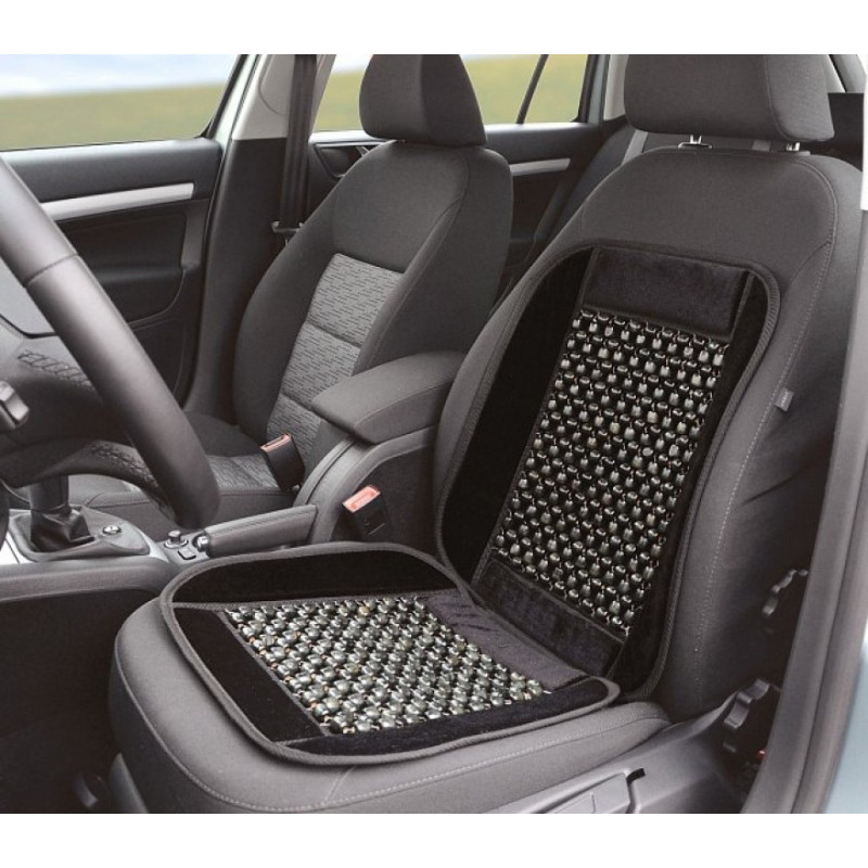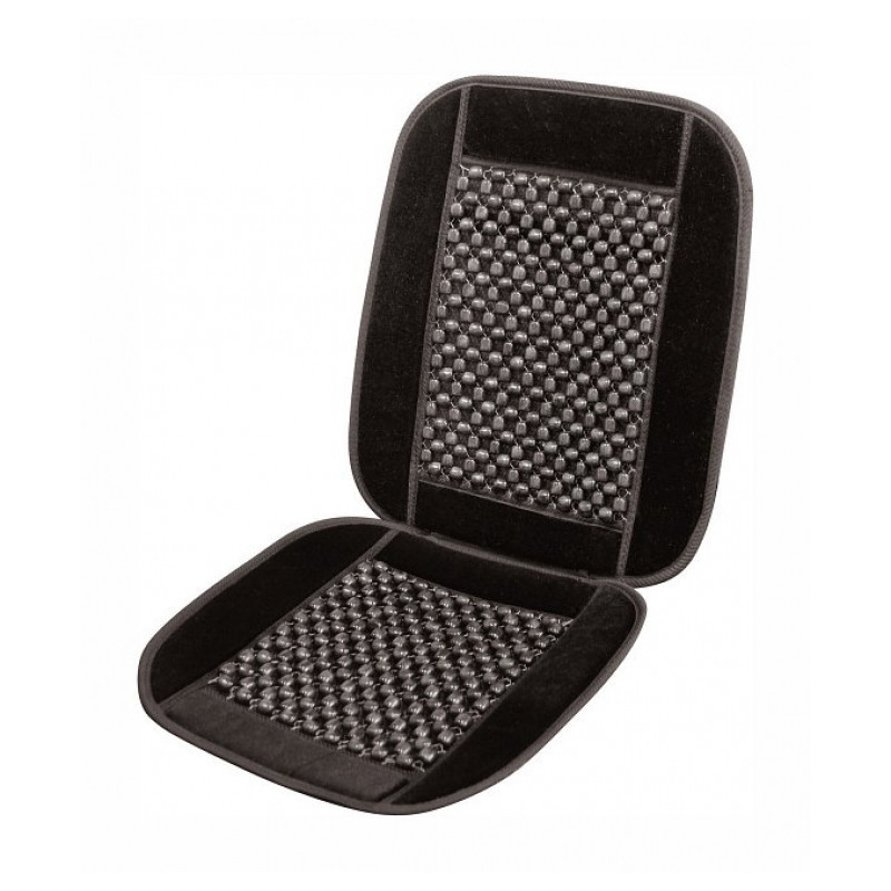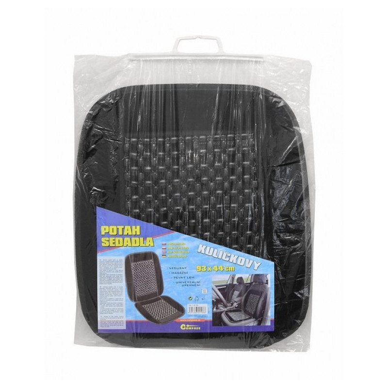 Vzdušný masážny poťah na sedadlo automobilu, univerzálne upevnenie na väčšinu bežne používaných sedadiel. Poťah s pevným lemom, výplň z drevených guličiek, ktor&´ príjemne masírujú telo, podporujú krvný obeh, pomáhajú znižovať únavu i bolestivosť chrbta a umožňujú prúdenie vzduchu medzi sedadlom a chrbtom vodiča. Ak poťah na sedadlo iba položíte (bez pripevnenie na operadlovú časť sedadla), je možné poťah použiť aj na sedadlá so zabudovaným bočným airbagom priamo v operadle. Veľkosť poťahu: 93 x 44 cm.