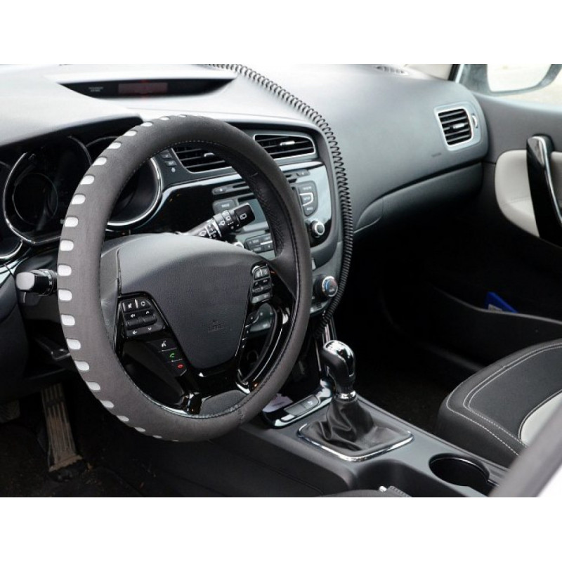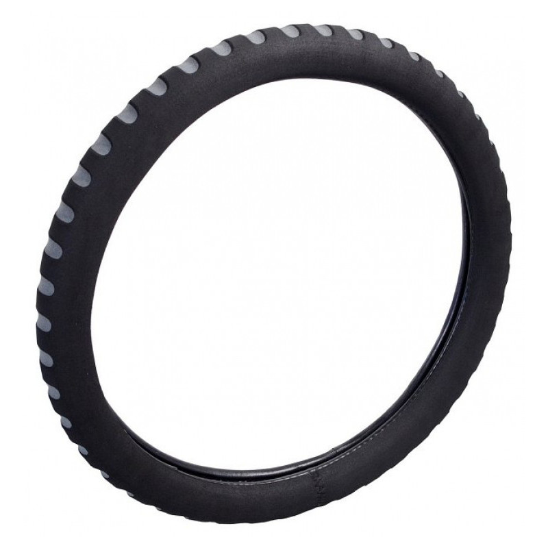Penový poťah určený na nasadenie na volant o priemere 37-39cm. Príjemný do ruky. Farba čierna s šedými prelismi.