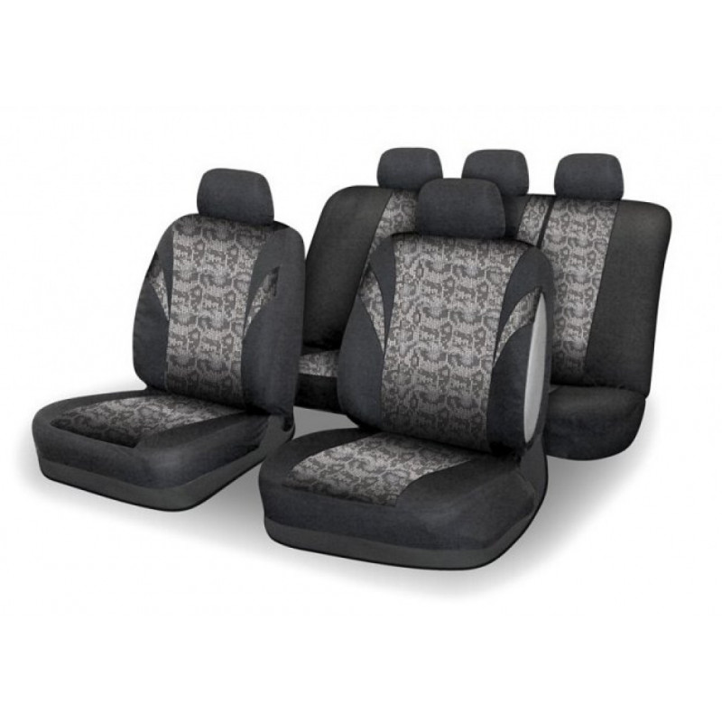 Poťahy sedadiel JACK, sada na celý automobil. Poťah je vyrobený zo spevneného podšitého materiálu v celej ploche, možno pripevniť na väčšinu bežne používaných automobilových sedadiel. Poťah možno použiť na sedadlách, ktoré majú zabudovaný bočný airbag priamo v operadle predných sedadiel. Balenie obsahuje poťah na predné sedadlo (2x), zadný sedák (celý), zadné operadlo (pomocou zipsu deliteľné na 3 diely), opierku hlavy (5x). Vďaka zipsom na zadnej operadlovej časti je možné poťahy použiť aj na vozidlá s delenými zadnými sedadlami a operadla sklápať bez nutnosti sňatí poťahu.