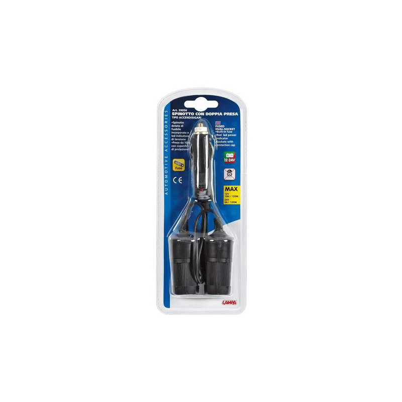 Predlžovací kábel a rozdvojka cigaretového zapaľovača Rozmery: VSTUP ---> 12/24 V - standard VÝSTUP ----> 2 x 12/24 V - standard - 10 A max