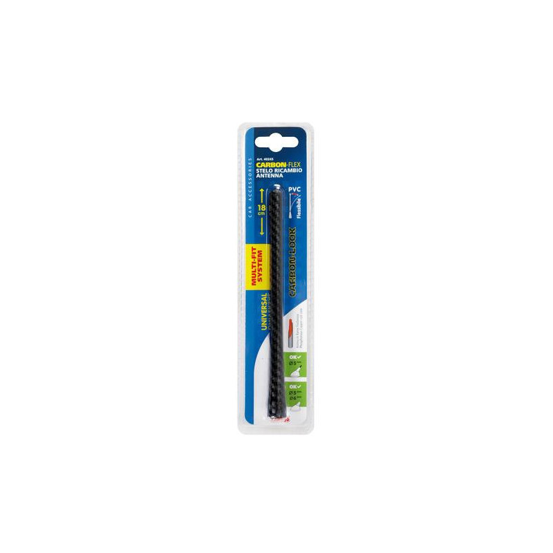 Prút antény s karbónovou povrchovou úpravou. Fosforovo-medené jadro pre dobrý príjem signálu. Vhodné pre vozidlá s prípojkou o priemer antény 5 mm (samec/samica) a 6 mm (samica).