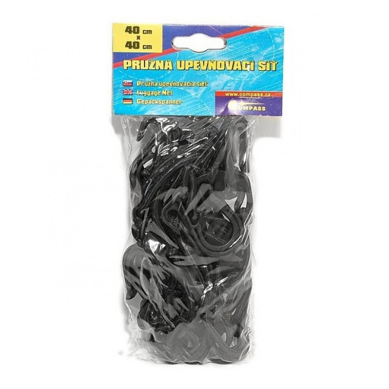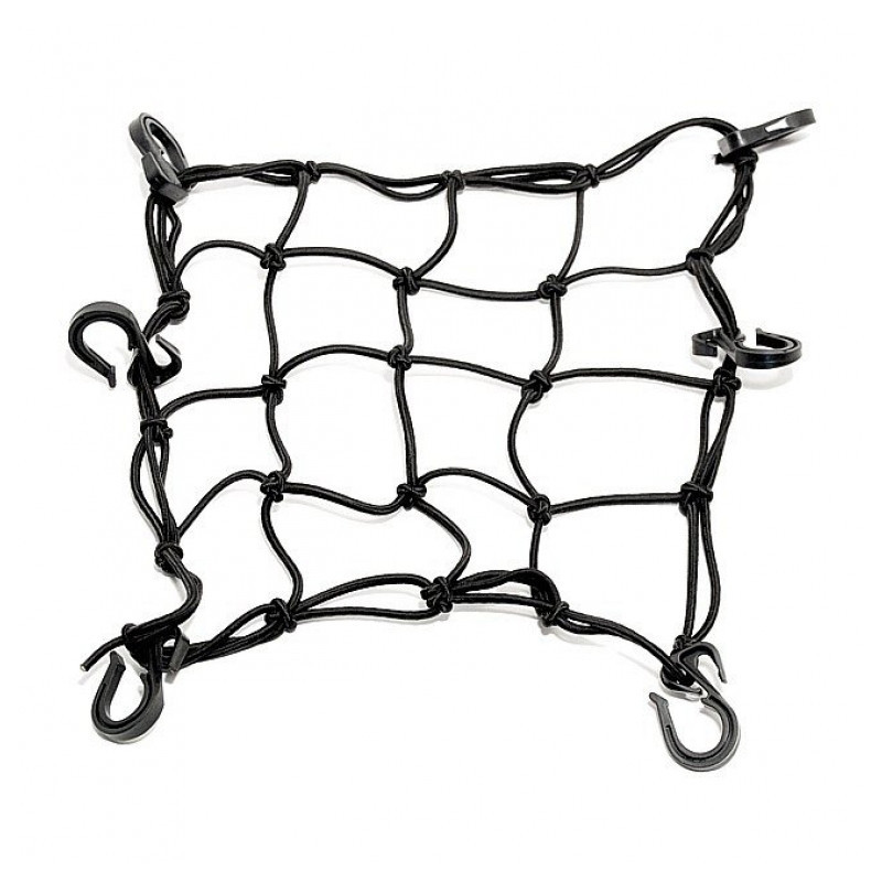 Pružná upevňovacia sieť s háčikmi, veľkosť 30 x 30 cm. Ideálne na pripevnenie ľahších predmetov na motocykel alebo bicykel (napr. prilba).
