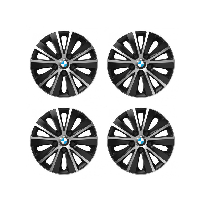 Puklice 14 RAPIDE silver and black pre BMW na ocelové disky. Pre kolesá o veľkosti R14 so živicovými samolepkami BMW.Destinatar :